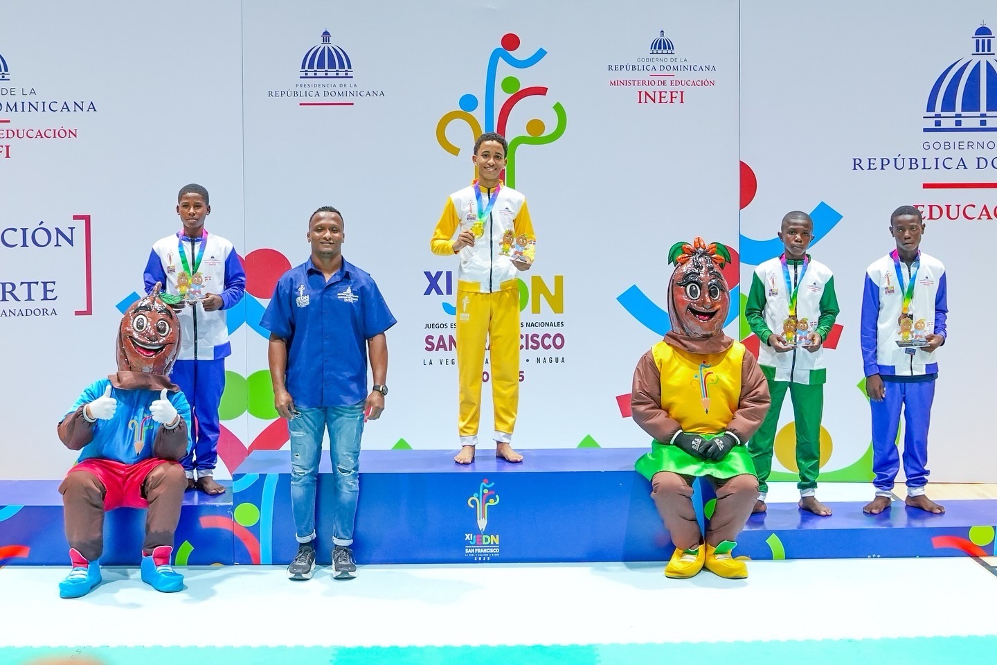 Los ganadores de medallas de oro en la modalidad individual en la rama masculina fueron los siguientes: en los 36 kilos el campeón fue Yariel Núñez de la Zona Metropolitana 2; Danyer Medina de la Zona Higuamo conquistó el primer lugar en 40 kilos; Yordany Lara de la Metropolitana 2 logró el oro en los 44 kilos. En los 48 kilos el francomacorisano Emmanuel Paulino de la Zona Nordeste se llevó la medalla aurífera; Ezequiel Pérez del Suroeste logró el primer lugar en 53 kilos; el francomacorisano Yerald Cepeda de la Zona Nordeste se alzó con el oro en los 58 kilos. Dariel Campusano de la Zona Metropolitana 1 logró el oro en los 64 kilogramos, y Yoangel Hidalgo de la Zona Metropolitana 2 logró el oro en más de 64 kilogramos.