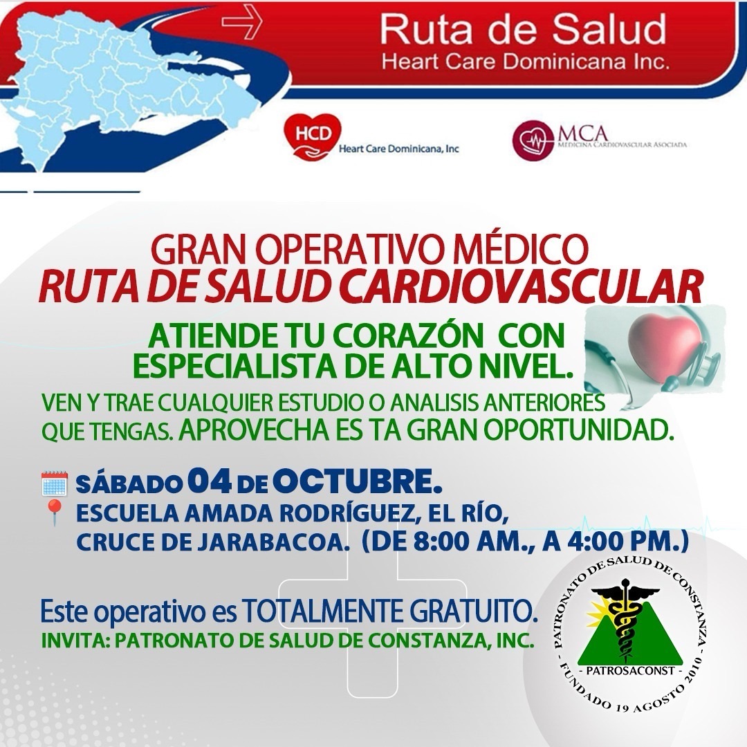 Esta iniciativa es apartidista y sin fines de proselitismo, creada con el firme compromiso de mejorar la calidad de vida en comunidades con poco acceso a servicios médicos especializados. El operativo se llevará a cabo en la Escuela Amada Rodríguez, El Río, Cruce de Jarabacoa, en un horario de 8:00 a.m. a 4:00 p.m.