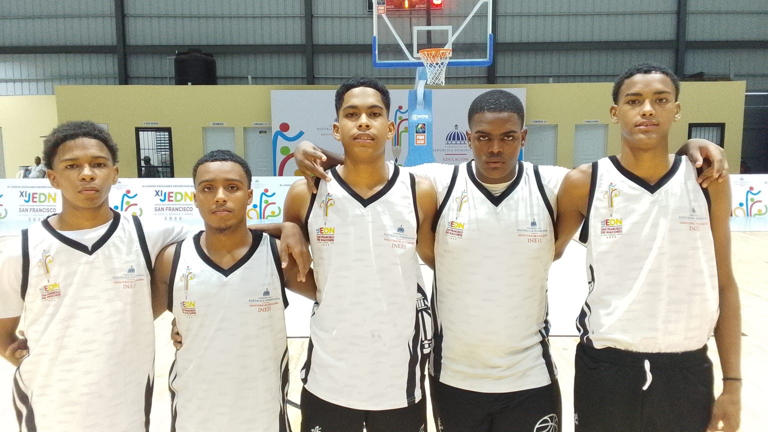 Nota de Pie de Foto: Quinteto de la zona Cibao Norte que avanzó a disputar la medalla de oro del basket masculino de los juegos escolares tras vencer a la zona Cibao Sur.