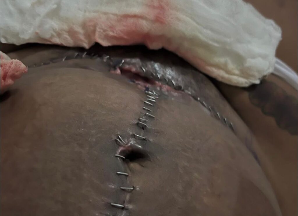 Suriel relató que el pasado 5 de septiembre de 2025 fue sometida a una cesárea debido a un diagnóstico de preeclampsia leve, pero el procedimiento habría terminado en una perforación intestinal y una infección generalizada causada por 1,800 CC de heces fecales dentro de su cuerpo, situación que puso su vida en peligro.
