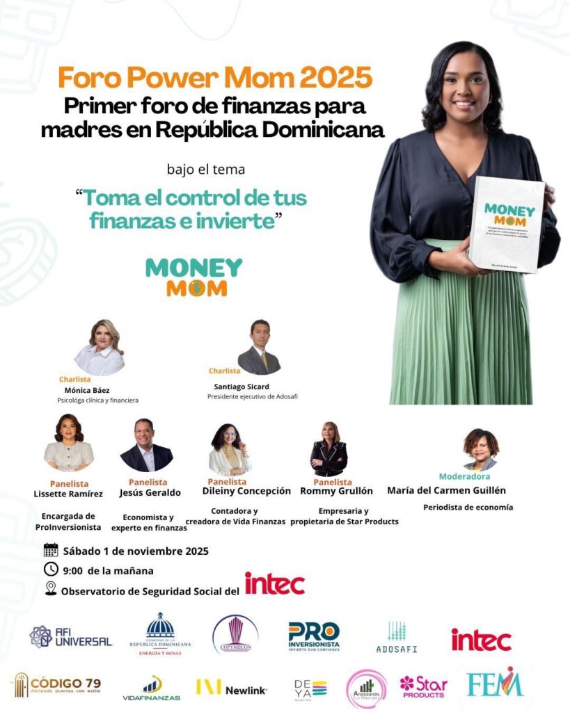 Santo Domingo, 26 de octubre de 2025. Bajo el lema “Toma el control de tus finanzas e invierte”, fue anunciado el primer foro de finanzas para madres en República Dominicana, “Power Mom 2025”, a celebrarse este próximo sabado, 1 de noviembre, organizado por la periodista especializada en economía Massiel de Jesús Acosta, autora de la guía Money Mom, quien promueve la educación financiera materna como vía para el bienestar económico y emocional.