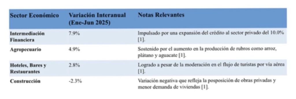Según cifras preliminares del Indicador Mensual de Actividad Económica (IMAE) del Banco Central de la República Dominicana (BCRD), el país registró un crecimiento interanual del 2.4% en el período enero-junio de 2025. Este resultado reflejó una desaceleración atribuida a la incertidumbre geopolítica y las condiciones de liquidez global.