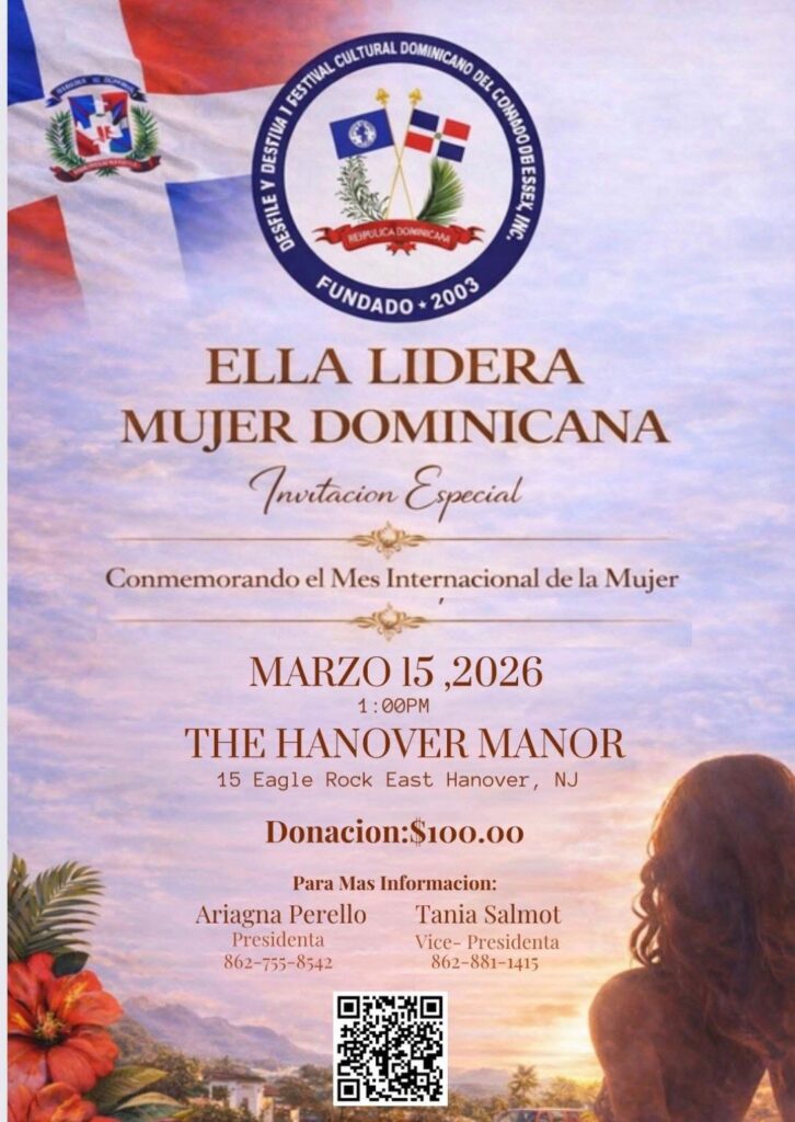 La actividad se llevará a cabo el domingo 15 de marzo de 2026, a la 1:00 de la tarde, en The Hanover Manor, ubicado en 15 Eagle Rock Ave., East Hanover, New Jersey, y reunirá a líderes comunitarios, representantes gubernamentales, organizaciones y ciudadanos comprometidos con el fortalecimiento del rol de la mujer en la sociedad.