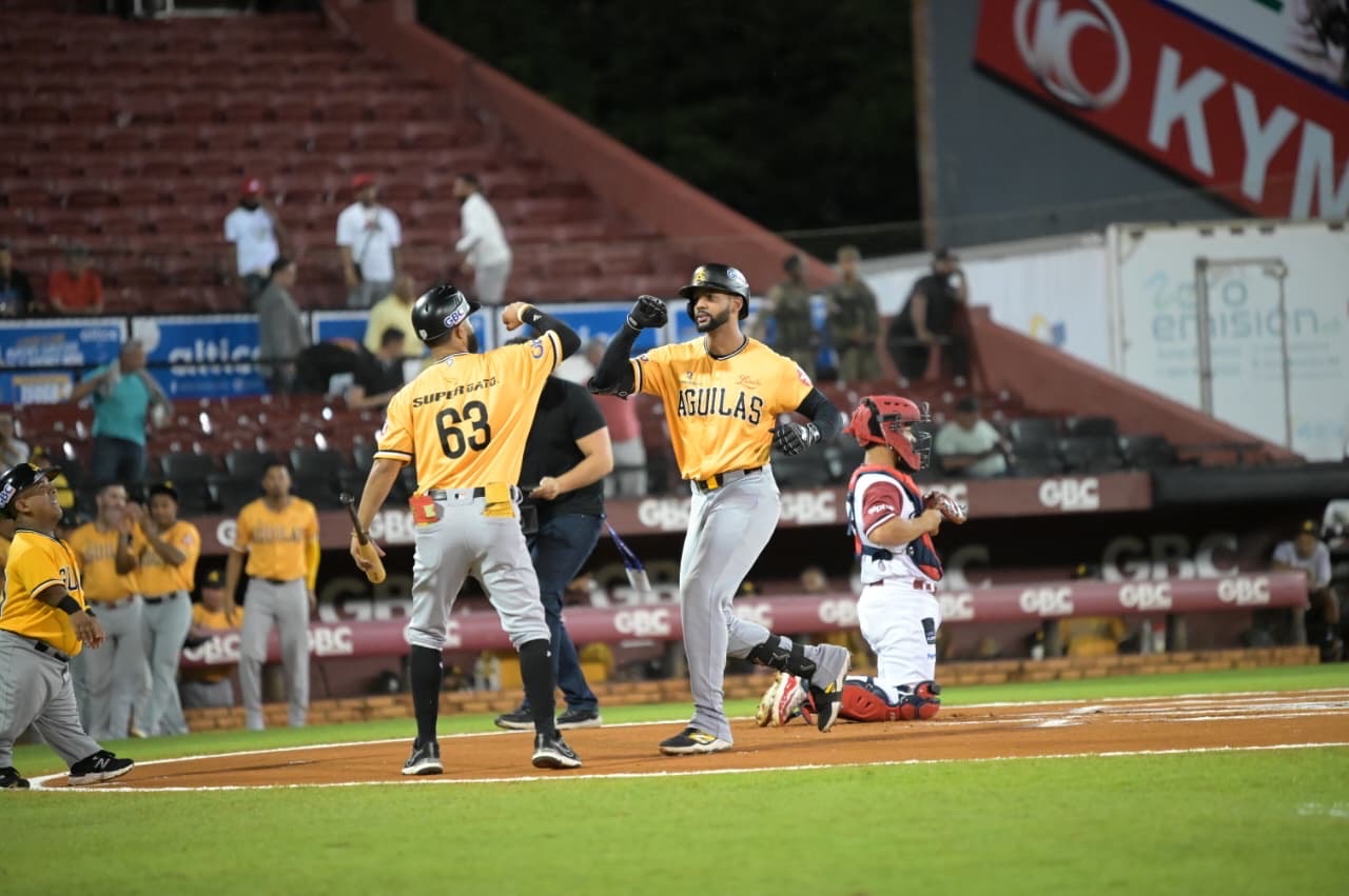 Las Águilas anotaron cuatro carreras en la octava entrada abriendo el episodio Leody Taveras con doblete al prado derecho; Gerardo Perdomo remolcó a Taveras con doblete al left; Ezequiel Duran cayó por la vía 1-3; Cristian Adames impulsó a Perdomo con imparable al right; Jonathan Clase negoció boleto; Adames anotó por wild pitch; Aderlin Rodríguez conectó inatrapable al jardín derecho; y Steward Berroa (que entró como corredor emergente) anotó por lanzamiento desviado del receptor ante un robo de la antesala.