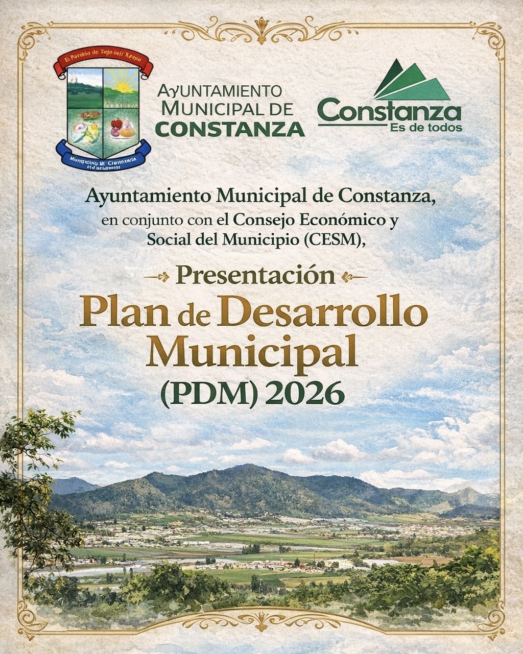 Constanza, 6 de febrero de 2026. — El Ayuntamiento Municipal de Constanza, en conjunto con el Consejo Económico y Social del Municipio (CESM), convocó hoy a los diversos actores de la comunidad a la Reunión de Presentación y Socialización del Plan de Desarrollo Municipal (PDM).